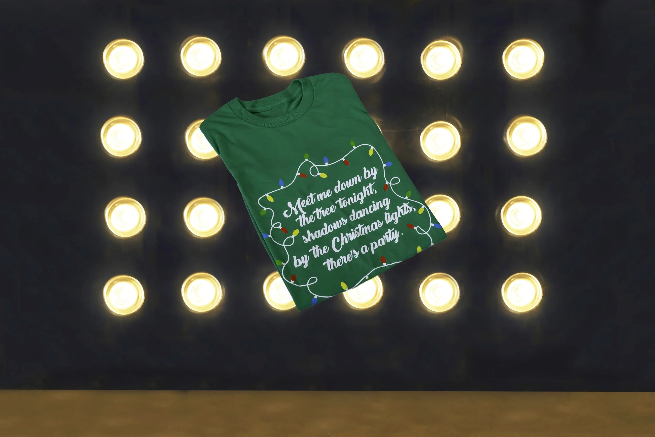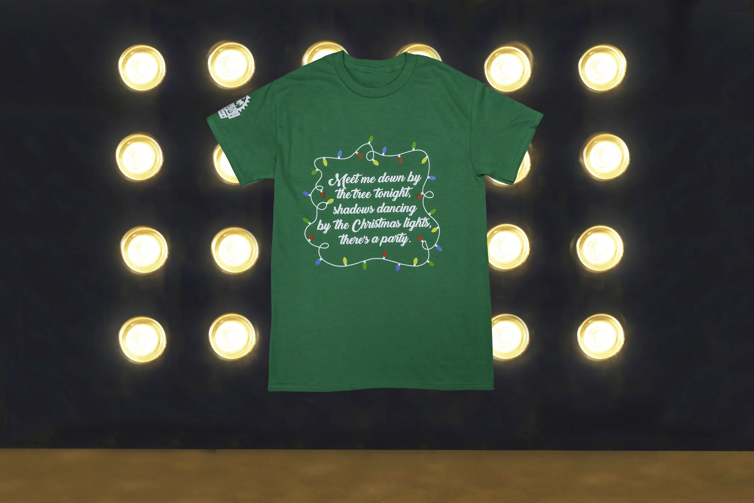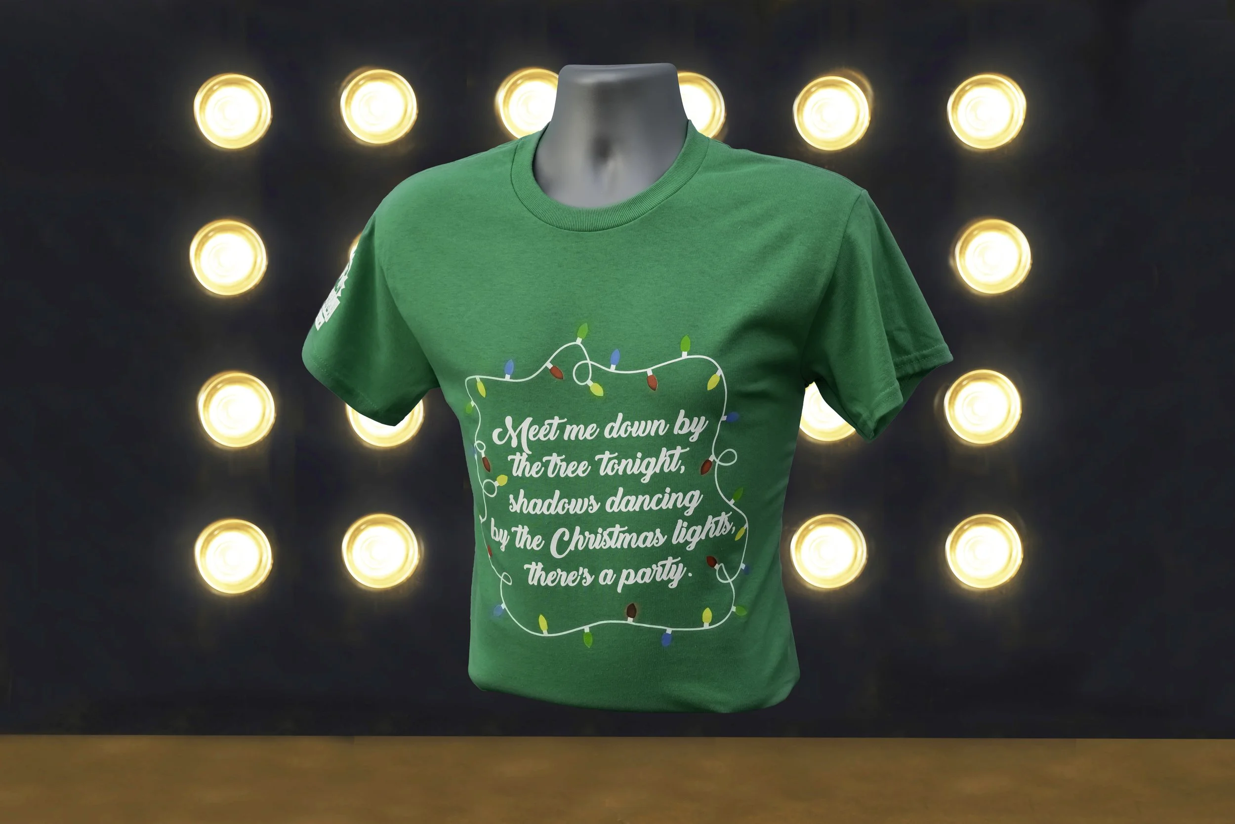 MERCH SHOP › "Meet me down by tree tonight" Green Christmas Tee Image 1 of 4 Image 2 of 4 Image 3 of 4 Image 4 of 4 "Meet me down by tree tonight" Green Christmas Tee £22.00 Size: Select Size Small 36-38 Medium 38-40 Large 42-44 XLarge 46-48 2XLarge 50-52 Color: Select Color Green Quantity: Add To Cart Added!